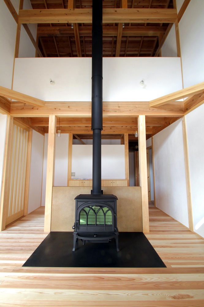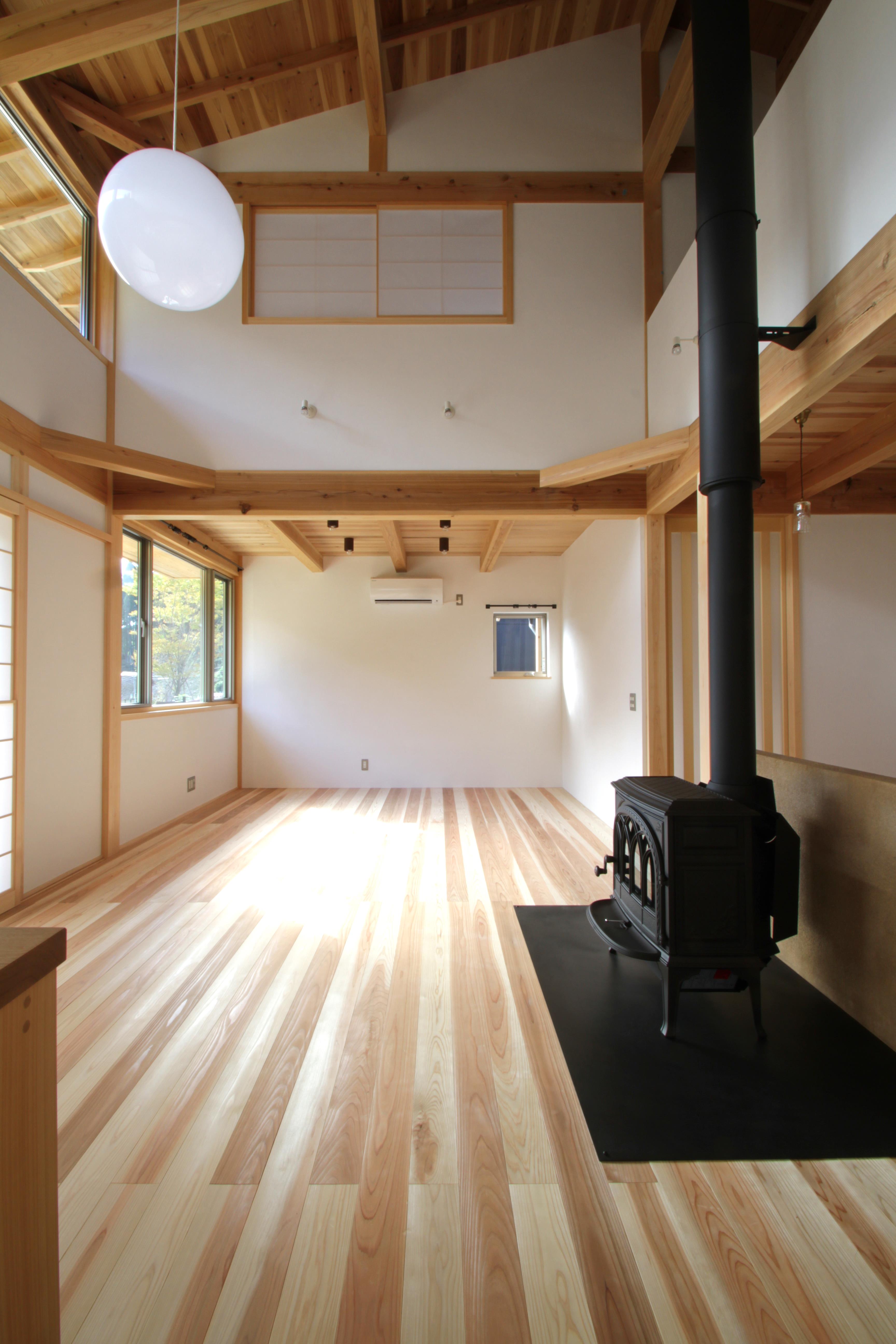 吹き抜けのあるリビングダイニングは南側の日差しと薪ストーブでとても明るく暖かいお部屋になっておりました。