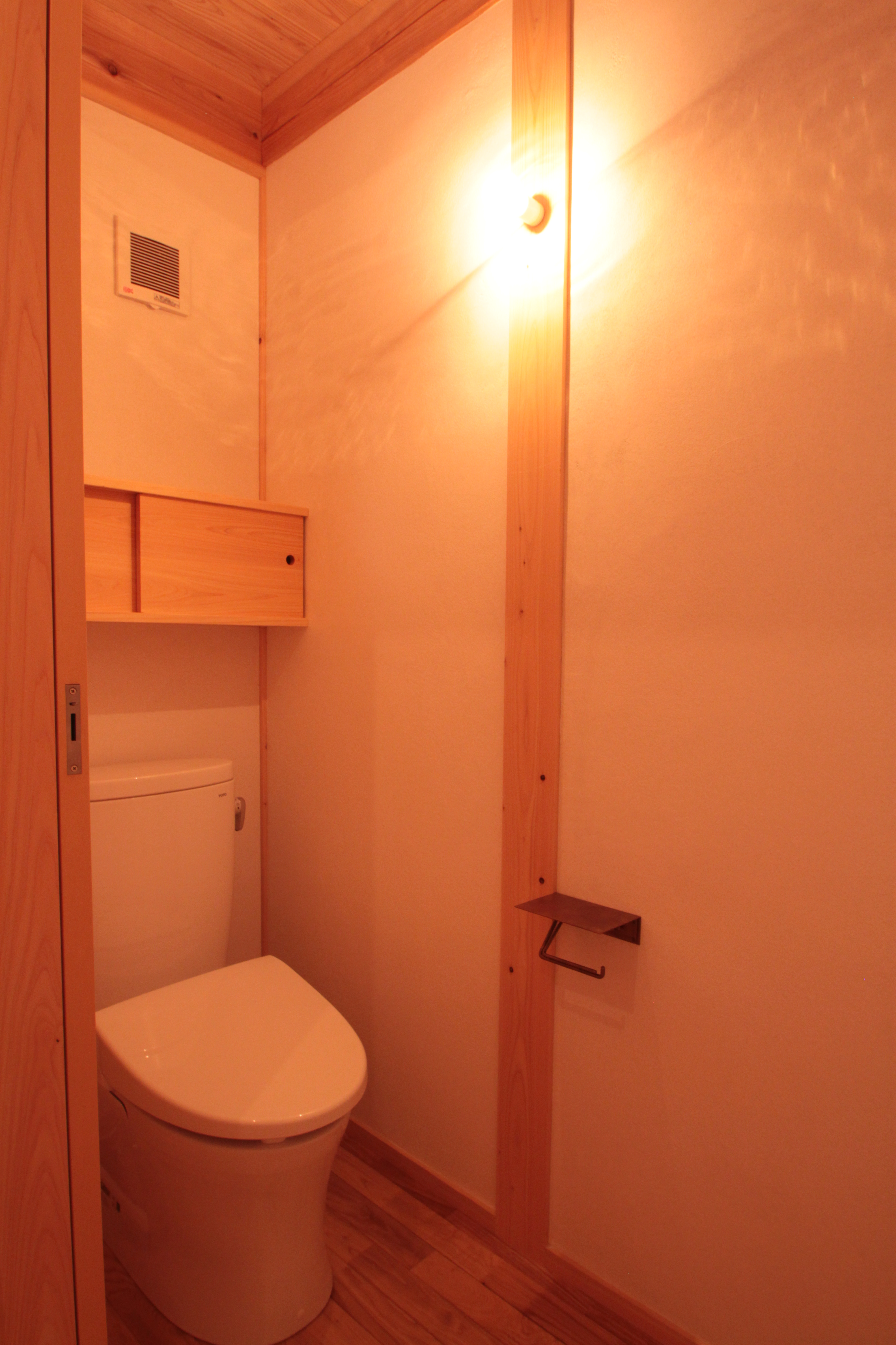 吹き抜けの壁は、室内側に寄せて土壁をつけることで柱を隠した大壁造りとし、漆喰は表面に凸凹とした表情が出るパラリ仕上げとしました。