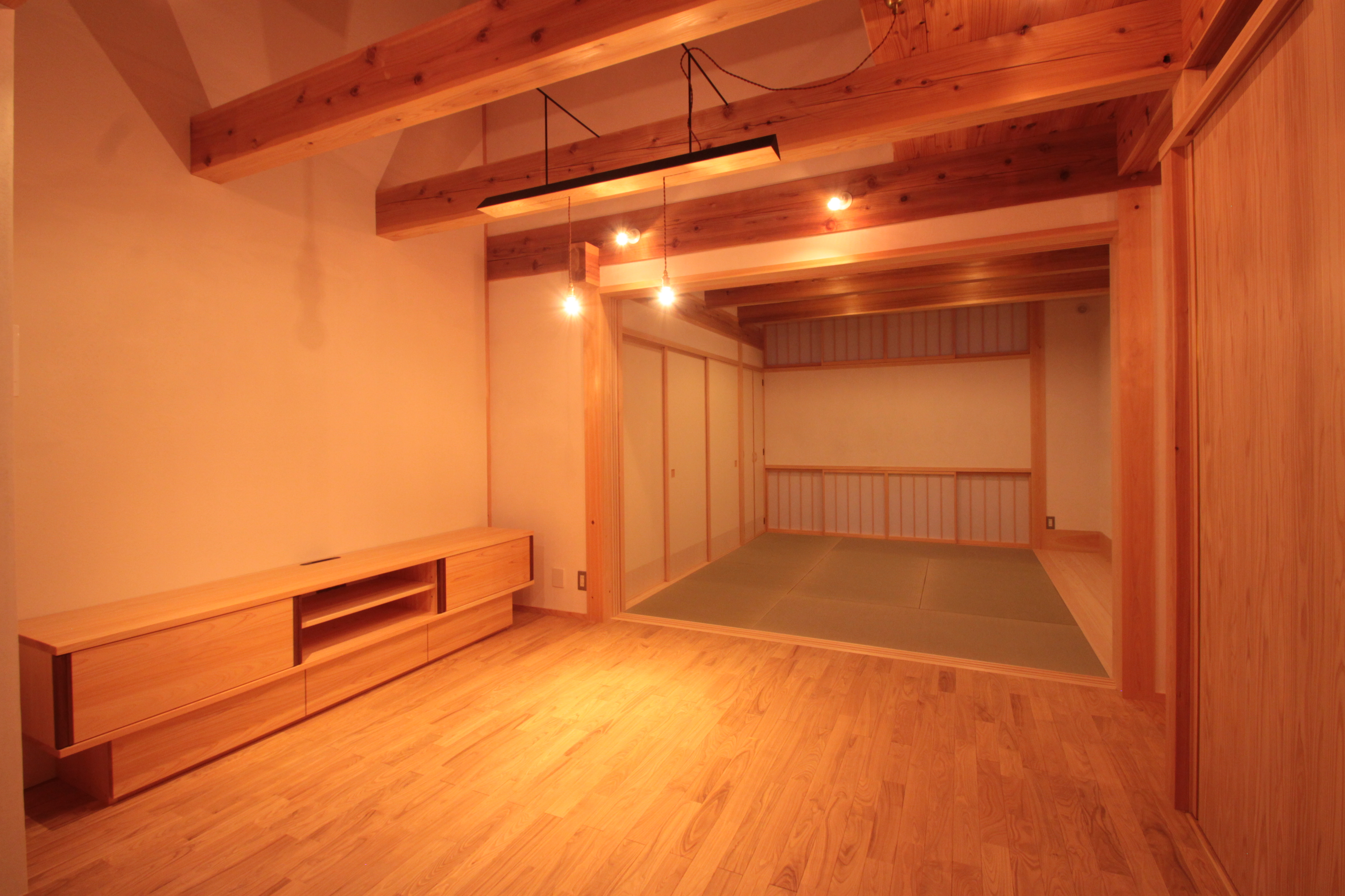 寝転んでゴロゴロくつろげるよう、リビングは畳の間としました。