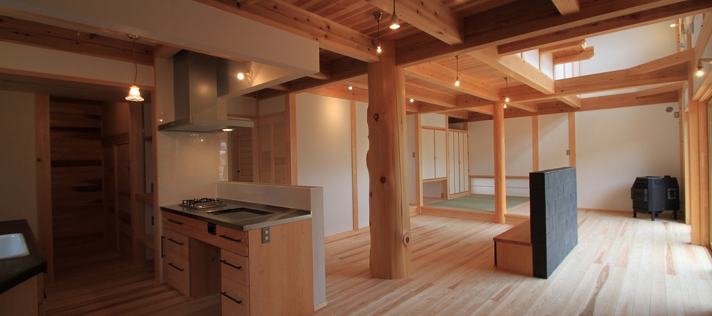 極太丸太柱が家を支える吹き抜けのある家