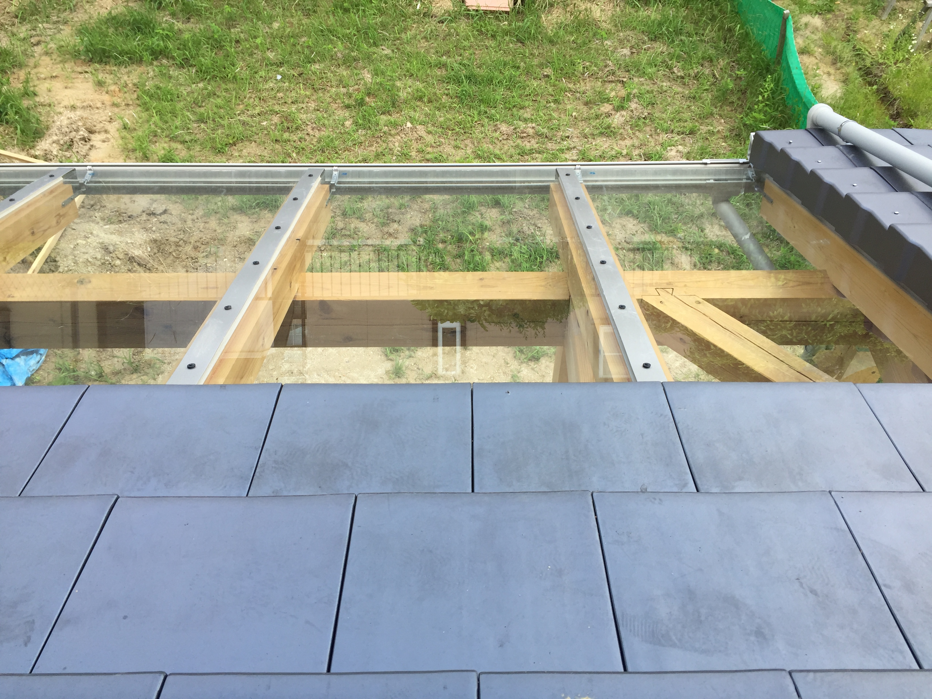 南側の庇にガラスを用いることで、冬季の日差しを室内に取り入れます